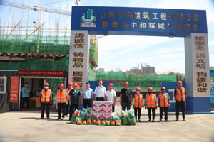 市工会领导来到山东泽华集团中房建工中和裕城项目工地,送来绿豆、矿泉水等慰问品,向奋战在施工一线的建筑工人表示慰问,倡导施工方要进一步关心建筑工人生产生活,为工人提供必要的防护用品,合理安排作业时间,在酷暑中保障工人身心健康。