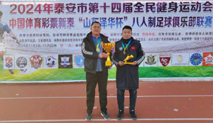 12月22日,2024泰安市第十四届全民健身运动会暨中国体育彩票新泰“山东泽华杯”八人制足球俱乐部联赛”在新泰市体育中心落下帷幕。