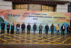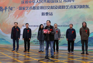 金秋送爽迎华诞,彩墨飘香舞平阳。为热烈庆祝中华人民共和国成立76周年,积极践行国家艺术基金繁荣艺术创作、打造和推广原创精品力作、培养美术艺术创作人才、推进国家艺术事业健康发展的宗旨,促进泰安市文化艺术交流和传播,展示基层文化事业发展成果,10月12日上午,“彩墨舞平阳”·国家艺术基金项目文献及资助艺术家冯晓东、高波美术精品巡展(新泰站)开幕仪式在新泰文化艺术城隆重举行。