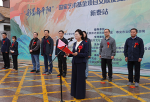 泰安市文化艺术中心党委书记、主任郑元致辞,此次联动巡展将泰安的“专业艺术成果”与新泰的“基层文化活力”相连,本身就是一次精准的价值互补:对泰安而言,新泰的民间文化积淀能为专业创作提供“接地气”的灵感源泉,让艺术创作不脱离群众、不脱离生活;对新泰而言,泰安市美术馆的国家级项目经验,能为文化艺术发展提供“提档次”的路径参考,文化艺术的交流也将为新泰文化发展注入新的活力;文化的生命力,在于相互滋养、共同成长,希望以此次展览为契机,持续推动文化联动走向“长效机制”,在不同文化艺术领域构建多层面交流平台,实现资源互补,丰富群众文化高质量供给,见证泰安、新泰两地文化协同发展的新可能。