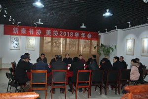 1月27日,新泰市书协、美协2018年会在新泰文化艺术城隆重召开,新泰市文联主席徐勤启同志、新泰市文联党组书记贠相宝同志、山东泽华置业集团副总经理王成喜同志参加了会议,会议由新泰市书协、美协主席陈广秀同志主持。会议深入学习贯彻习近平总书记系列讲话精神,总结2017年工作,部署2018年工作计划,尤其强调了市书协、美协入住新泰文化艺术城以来取得的成绩,充分肯定了新泰文化艺术城对全市文化产业的发展做出的巨大贡献。