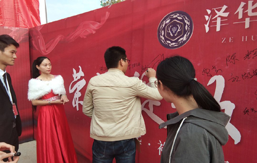 10月20日早,距离开盘还有一个多小时,很多客户已经陆续到达,大家早早赶来,生怕错过自己心仪的房源,秋日的清晨微凉,也挡不住大家的热情,签名墙上密密麻麻的名字,现场涌动的人潮,充分印证了泽华·裕泰园的人气与魅力。